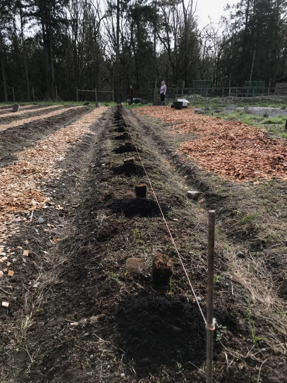 The client’s goal is ultimately to create an abundant berry field for a future u-pick operation, with food forest-style hedgeways. This first round of planting is only the beginning of her long-term vision. Already, it’s been months in the making, starting last year, when she reached out to book an initial consultation and received our project proposal with step-by-step recommendations on how to make the most of her 1 acre plot.